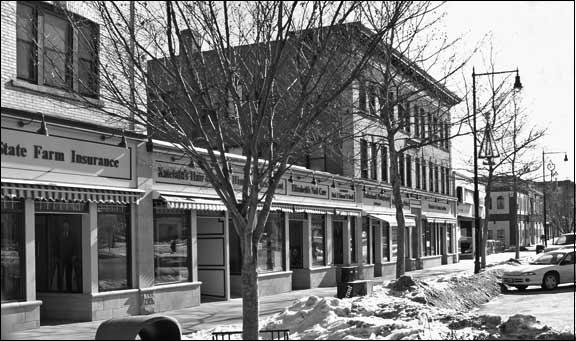 The same section of buildings along Main Street stretching from Brainard Place to Bissell Street shows what little effect time has had on Main Street. This photo was taken in January 2003.