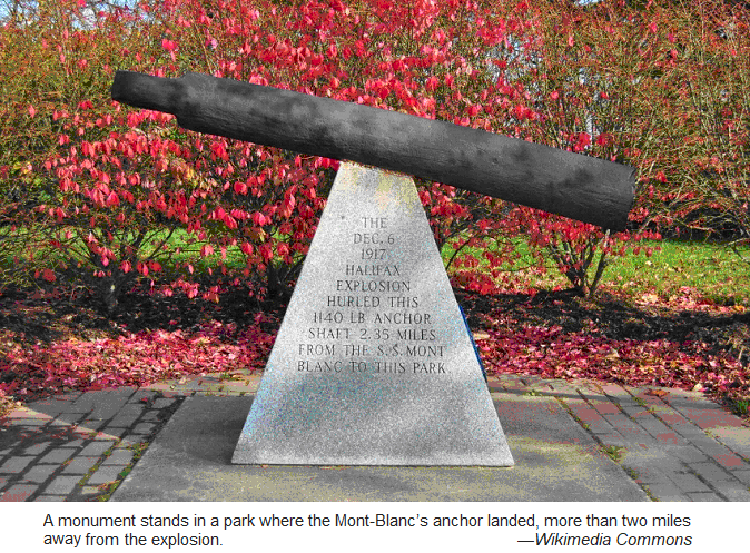 The explosion launched parts of the ship miles away. The ship’s anchor — now a monument — landed more than